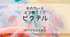 「ピクテル」は、透明なピクトグラムカードを組み合わせてお題を表現するゲーム。漫画のキャラクターや最近あっいいこと、嫌なことなどさまざまなテーマで遊びます。