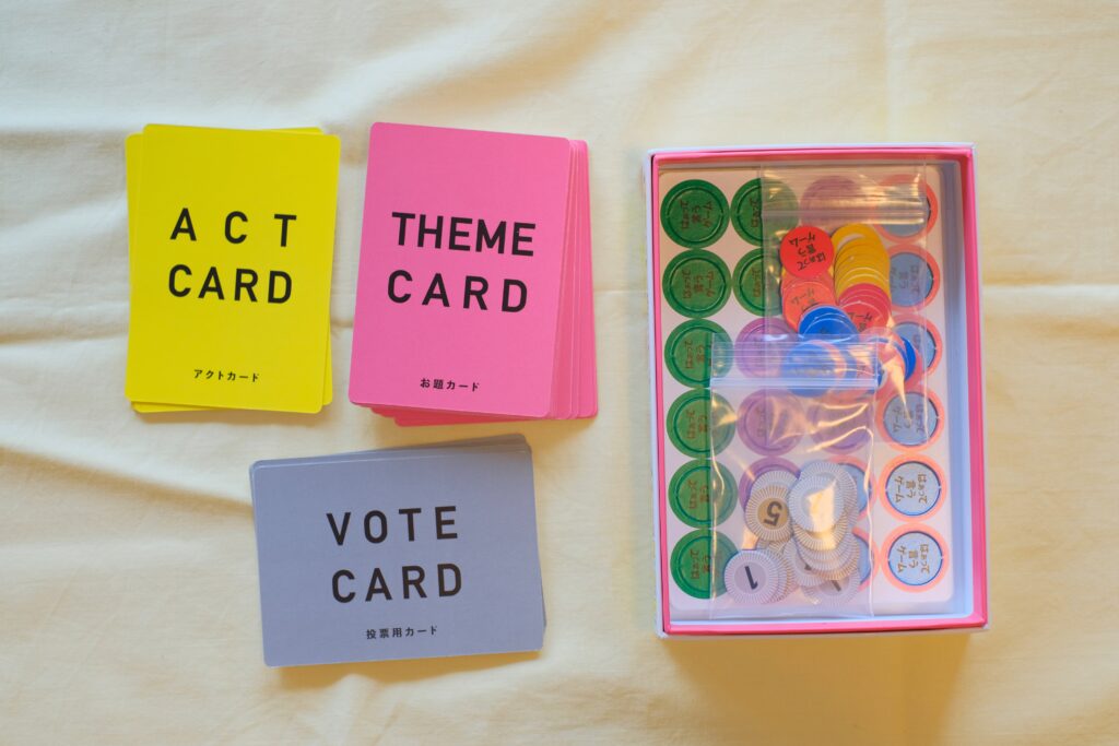 - 各プレイヤーに投票カードと回答チップを配る