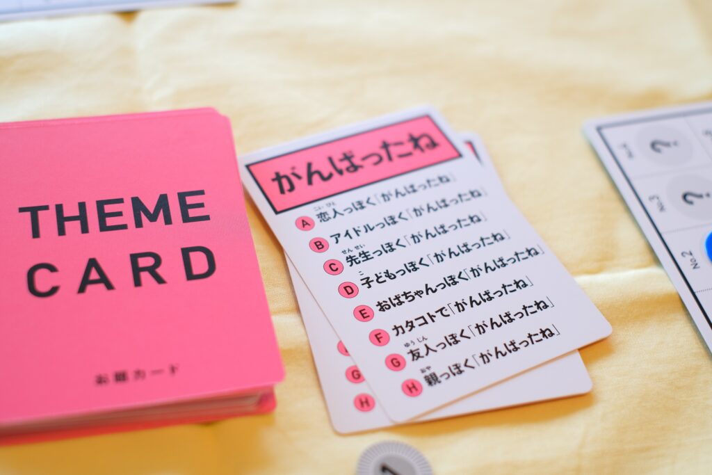「はぁって言うゲーム」とは、「はぁ」や「おーい!」など、同じ言葉を使って違う感情を表現するコミュニケーション系カードゲーム。