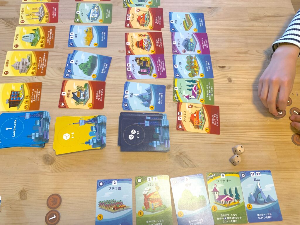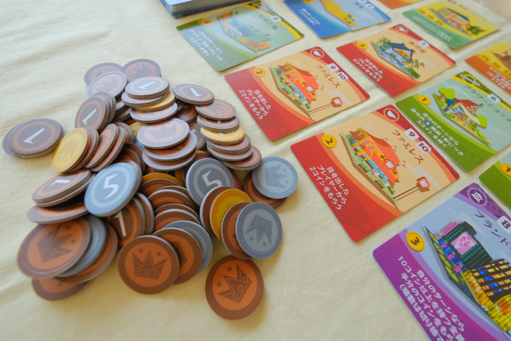「街コロ通」は、自分の街を発展させてお金を稼ぐカードゲーム。
