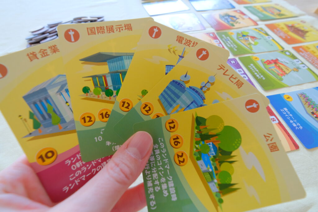 - 場にランドマークと施設を5枚ずつ表にして並べる