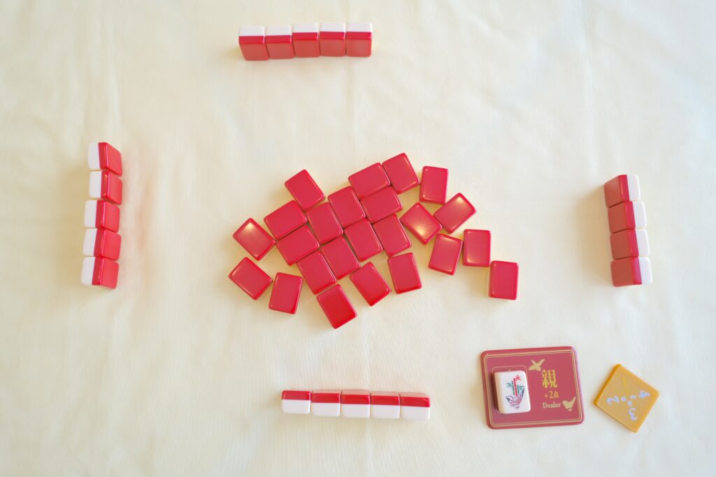 - プレイヤーは牌を5個ずつ引いて手前に並べる