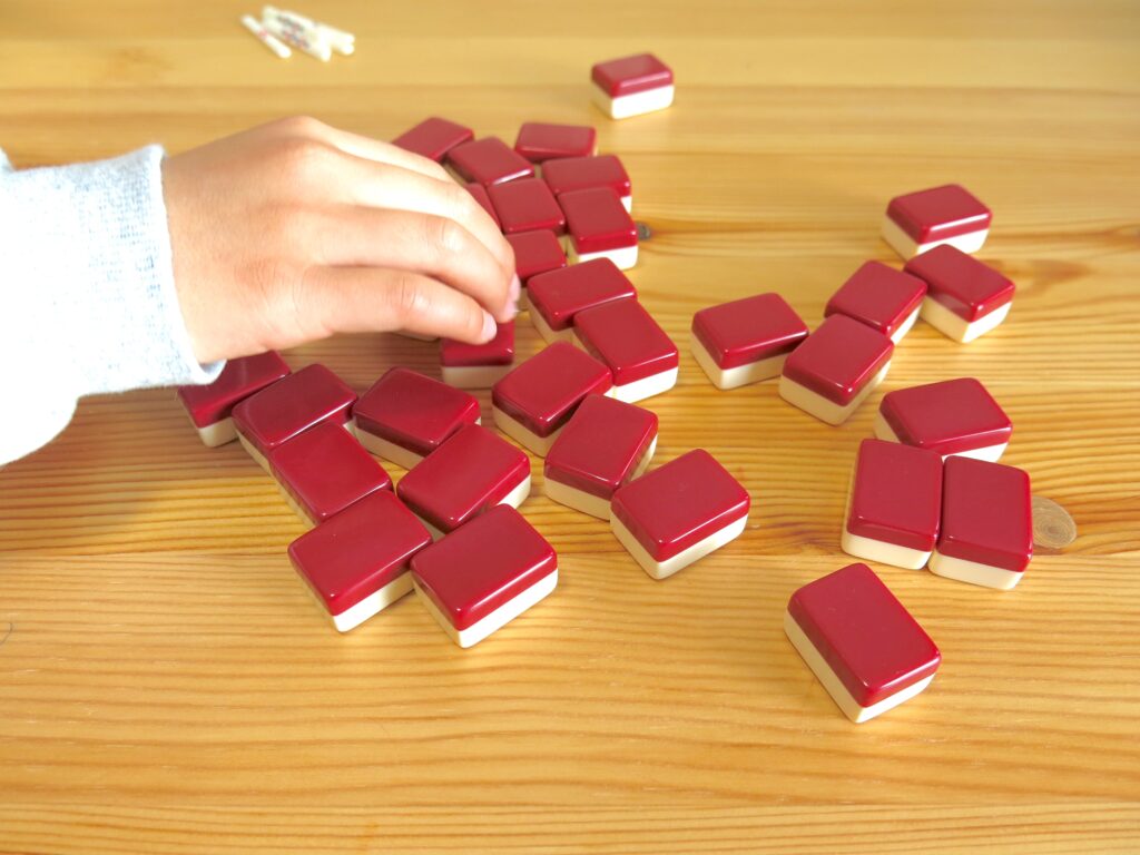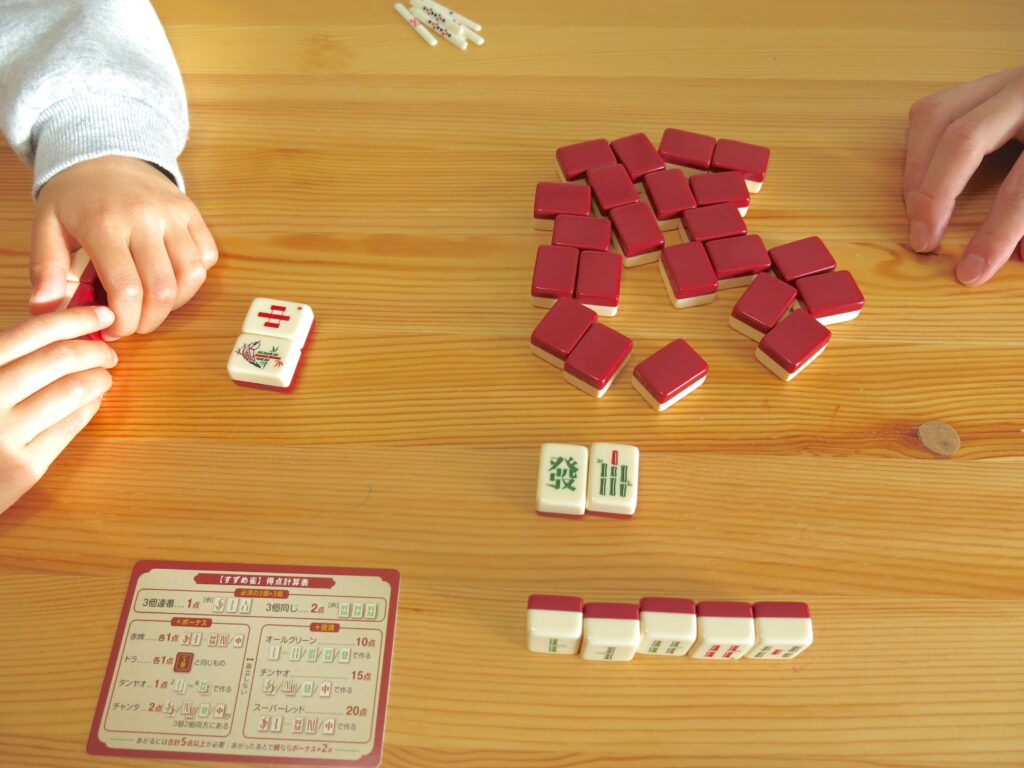 最初は、牌の読み方や順番すらわからなかった子どもも、今ではスラスラと役を作り「ロン!」と得意気です。