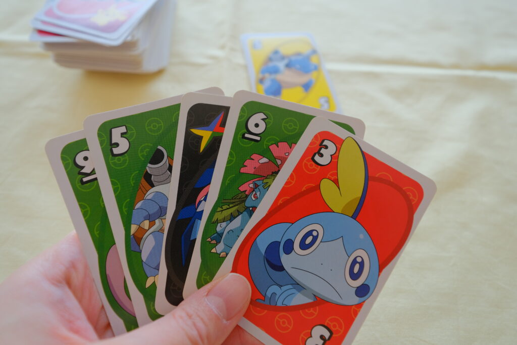 筆者の子どもは、ポケモンに惹かれて「UNO」で遊び始めました。そのときの様子は、「UNO」で実際に遊んでみた様子|何歳から遊べる?公式年齢と実際に遊んだ感想でご紹介しています。